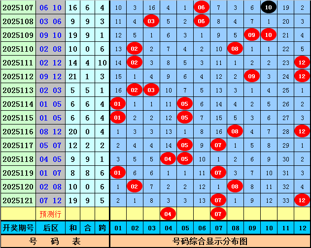 第2025122期大乐透前区胆码保举:01、10。