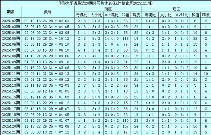第2025122期大乐透前区15码保举:01、02、04、10、12、13、14、16、19、20、21、26、32、34、35。