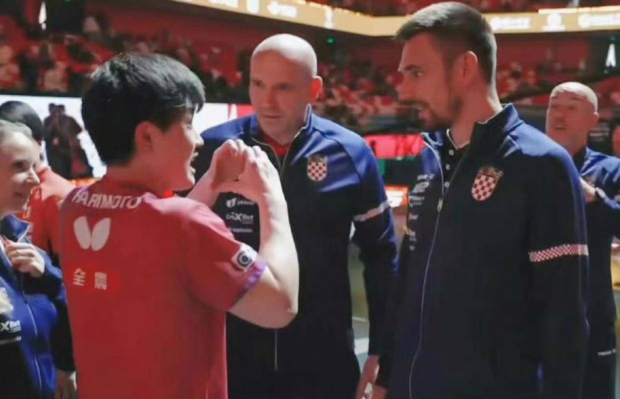 乒乓球羼杂团体宇宙杯第二阶段的比赛本领,日本队以小组第一的获利出线晋级八强,并在晚些时刻与中国香港队交手,而就在此前与克罗地亚队的比赛,成都不雅众皆声为敌手加油的一幕,激发外界球迷眷注,张本智和有点褊狭,赛后比心主动示好,却不被众人买账。